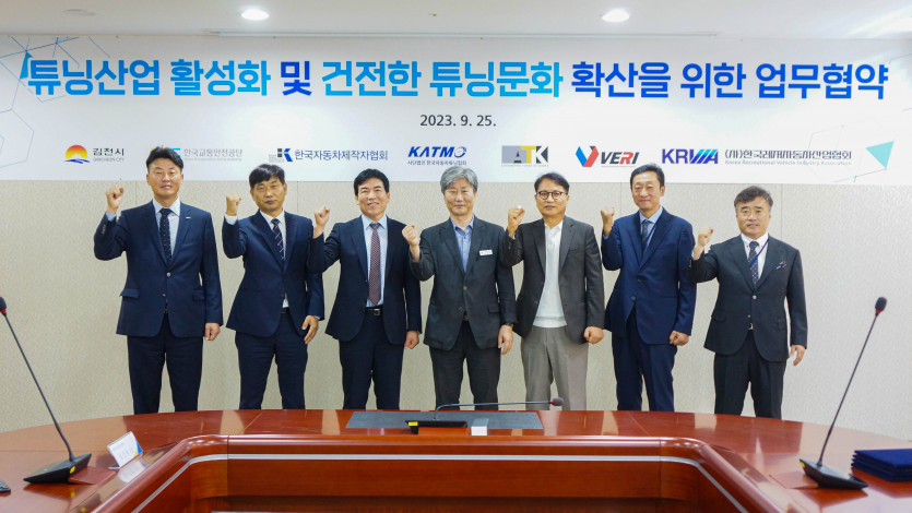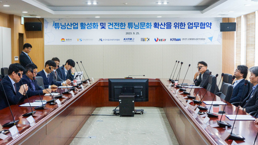 튜닝산업 활성화 관련 MOU 체결 페이지 정보 작성자 : 최고관리자 조회수 : 525회 작성일 : 23-10-05 본문 ○일시 : 9월 25일(월) 11:00~12:00○장소 : 한국교통안전공단(김천) 대회의실○참석자 - 김천시청 : 경제관광국장, 미래혁신전략과장 등 관계자 - 교통안전공단 : 자동차검사본부장, 자동차검사실장등 - 협회 : 우리 협회, 튜닝협회, 레저산업협회 등 ○주요내용 - 김천시 자동차 튜닝산업 단지 구축 등 튜닝활성화 방안 협의 - 기타 튜닝산업 활성화를 위한 공동사업 개발 등 목록 이전글특장산업 활성화를 위한 산업통상자원부 제1차관 면담 24.05.22 다음글대외협력활성화 고문 위촉식 23.09.07